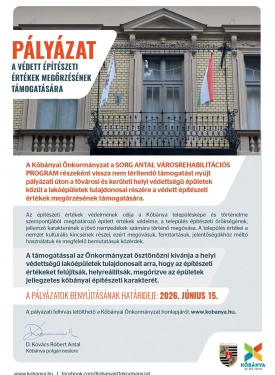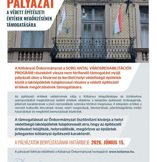 A Kőbányai Önkormányzat a Sorg Antal Városrehabilitációs Program részeként vissza nem térítendő támogatást nyújt pályázati úton a fővárosi és kerületi helyi védettségű épületek közül a lakóépületek tulajdonosai részére a védett építészeti értékek megőrzésének támogatására. Az építészeti értékek védelmének célja a Kőbánya településképe és történelme szempontjából meghatározó épített értékek védelme, a település építészeti örökségének, jellemző karakterének...